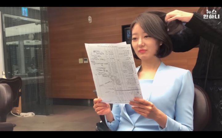 뉴스가 시작하기 전에는 옷을 피팅하고 분장실에 들러 헤어메이크업도 받아야 한다.