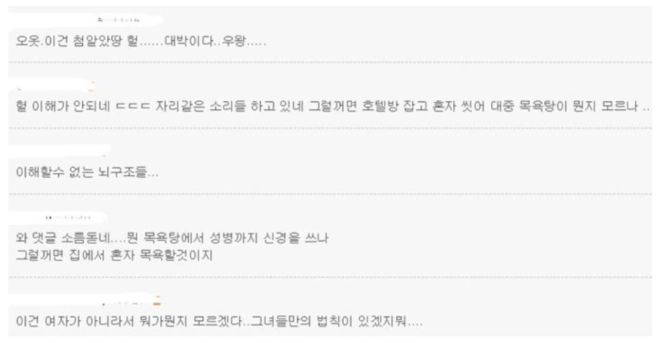 예를 들어 수건의 경우 남자들은 자유롭게 탕 안에서 무제한으로 쓸 수 있지만 여자들은 입장할 때 카운터에서 2장씩 받아서 써야 한다.