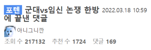 온라인 커뮤니티에는 “군대 vs 임신 논쟁 한방에 끝낸 댓글”이라는 제목의 글이 올라와 누리꾼들 사이에서 엄청나게 화제가 되고 있다.