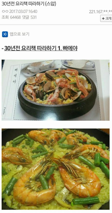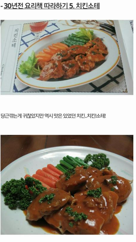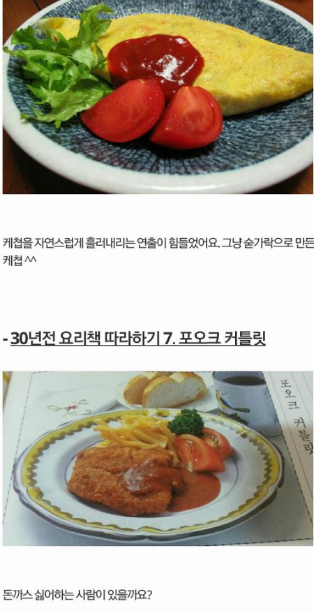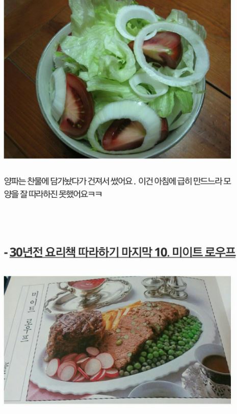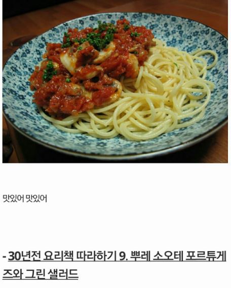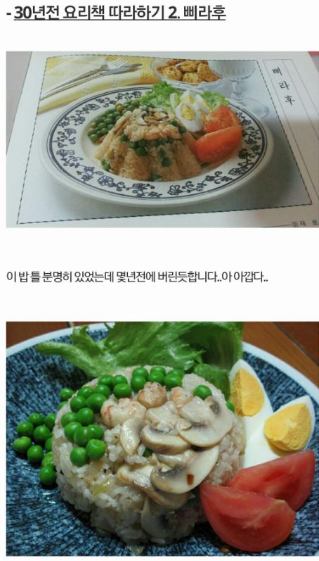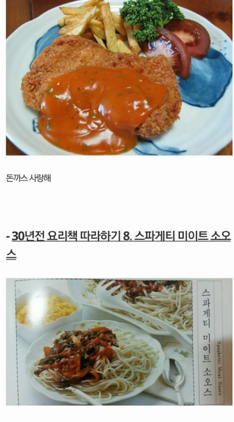 30년 전 요리책을 그대로 따라한 누리꾼의 10가지 요리 30년 전 요리책을 그대로 재현해 낸 한 누리꾼의 게시물을 소개한다. ADVERTISEMENT 책을 그대로 따라한 요리도 요리지만 요리 이름도 눈길을 끈다. ‘미이트 소오스 스파게티’ 보고 있으면 배고파지는 10가지 요리를 살펴보자. #1 빠에야 온라인 커뮤니티 ‘개드립’ ADVERTISEMENT 온라인 커뮤니티 ‘개드립’ #2 삐라후 온라인 커뮤니티 ‘개드립’ ADVERTISEMENT 온라인 커뮤니티 ‘개드립’ #3 프라이드치킨 크래커 온라인 커뮤니티 ‘개드립’ ADVERTISEMENT 온라인 커뮤니티 ‘개드립’ #4 라이스 크로켓 온라인 커뮤니티 ‘개드립’ ADVERTISEMENT 온라인 커뮤니티 ‘개드립’ #5 치킨소테 온라인 커뮤니티 ‘개드립’ ADVERTISEMENT 온라인 커뮤니티 ‘개드립’ #6 라이스 오믈렛 온라인 커뮤니티 ‘개드립’ ADVERTISEMENT #7 포오크 커틀릿 온라인 커뮤니티 ‘개드립’ 온라인 커뮤니티 ‘개드립’ ADVERTISEMENT #8 스파게티 미이트 소오스 온라인 커뮤니티 ‘개드립’ 온라인 커뮤니티 ‘개드립’ ADVERTISEMENT 온라인 커뮤니티 ‘개드립’ #9 뿌레 소오테 포르튜게즈와 그린 샐러드 ADVERTISEMENT 온라인 커뮤니티 ‘개드립’ 온라인 커뮤니티 ‘개드립’ ADVERTISEMENT #10 미이트 로우프 온라인 커뮤니티 ‘개드립’ 온라인 커뮤니티 ‘개드립’ ADVERTISEMENT