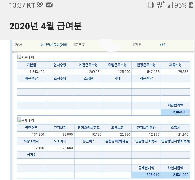 글쓴이는 일부 부풀려진 내용이 있다며 자신의 최근 급여명세서를 공개했다.