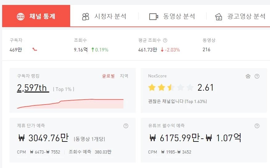 또한 평균 조회수는 2% 떨어졌으나 총 조회수가 174만 회 증가하며 여전한 영향력을 보였다.