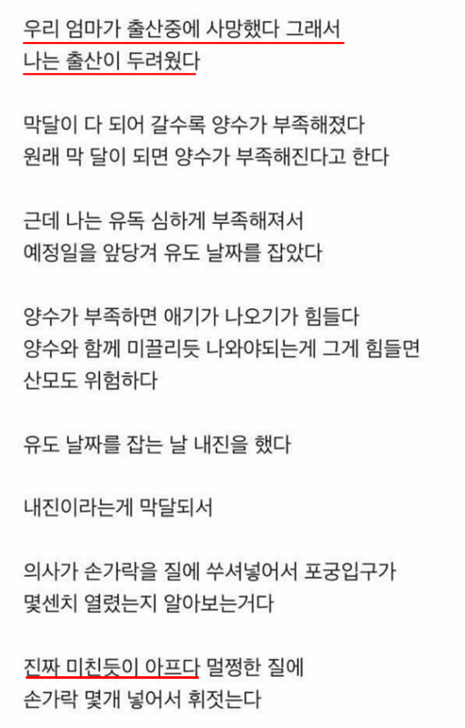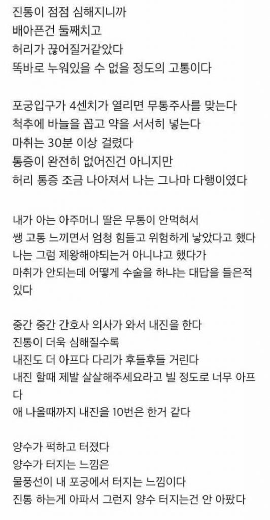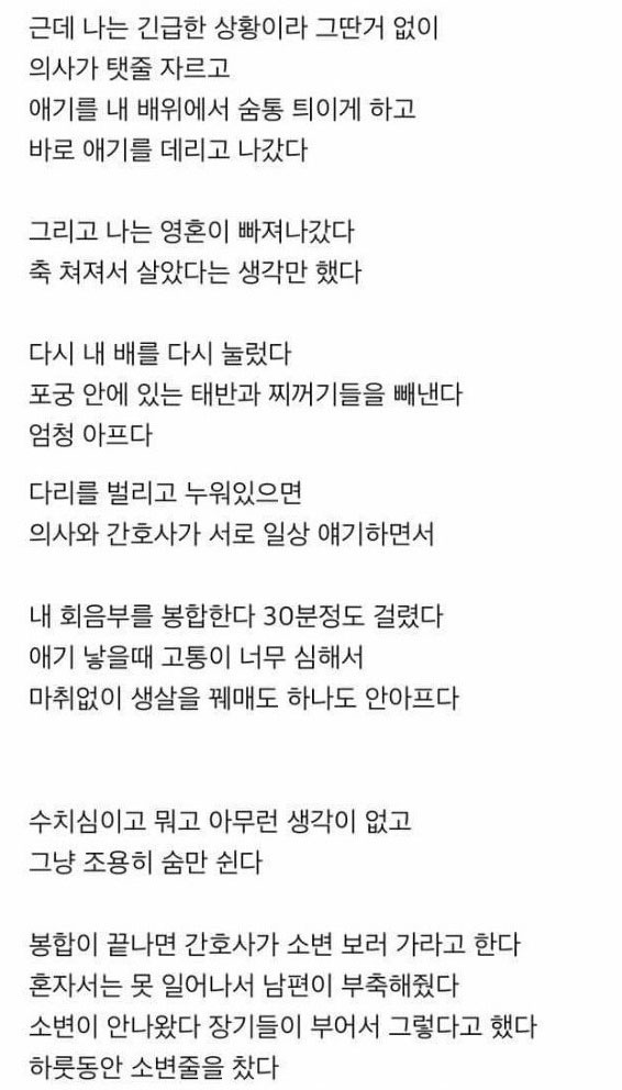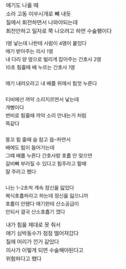 해당 게시글을 올린 작성자 A씨는 “어떤 아기엄마의 현실적인 출산 후기”라는 제목의 글로 많은 이들의 관심을 끌었다.