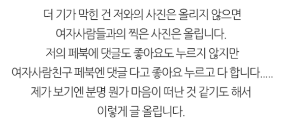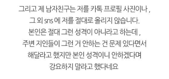 “남자친구가 저와 사귀는 티를 내기 싫어합니다” “남자친구가 저와 사귀는 티를 내기 싫어합니다” ADVERTISEMENT 최근 인터넷 커뮤니티에서 화제가 된 한 네티즌의 사연을 소개한다. KBS ‘황금빛 내 인생’ ADVERTISEMENT 본인의 SNS에 일체 여자친구와 관련된 내용을 올리지 않는다느 사연자의 남자친구. KBS ‘황금빛 내 인생’ ADVERTISEMENT KBS ‘황금빛 내 인생’ ADVERTISEMENT 여러분은 어떻게 생각하시나요?