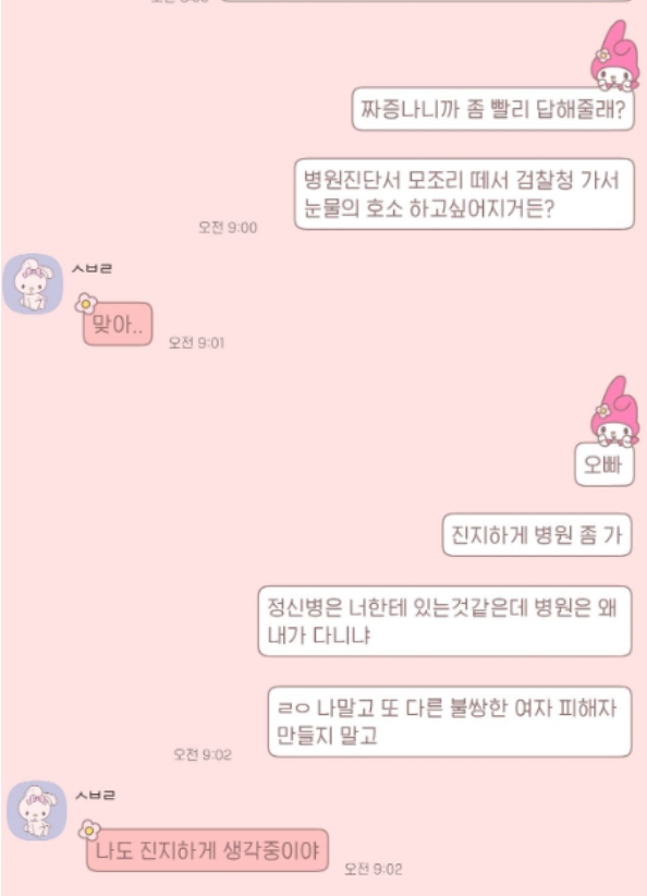 이어 그는 남자친구와 카톡하고 그 내용을 캡쳐해서 공개했다.