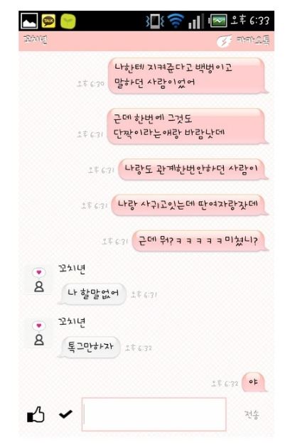 이 아래서부터는 친구 B와의 카톡 내용이다.