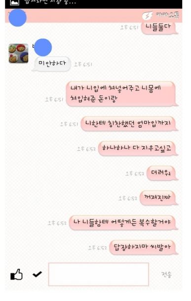 그래서 무시했더니 전화가 왔고, A씨는 받아서 “너 혼자 칠번방의 선물이건 팔번방의 선물이건 실컷 봐라”고 하고 핸드폰을 끈 상태에서 집으로 돌아왔다.