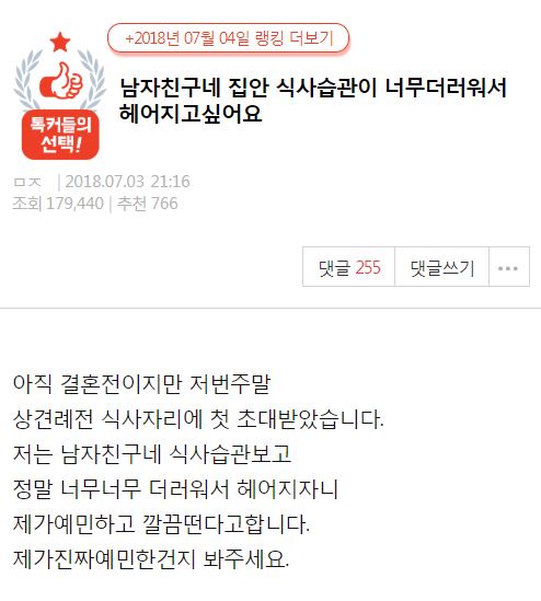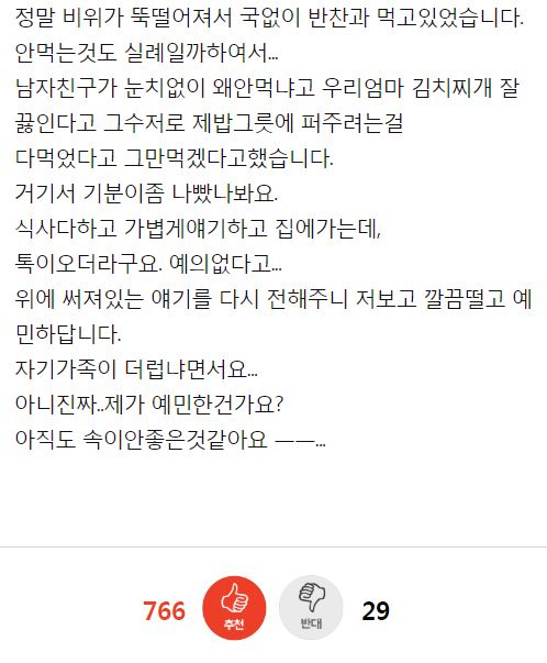 “남자친구 집안 식습관이 너무 더러워서 정 떨어져요”