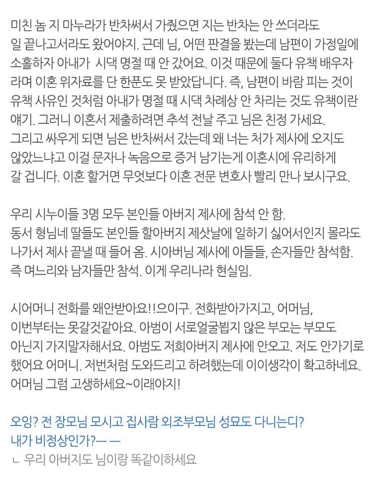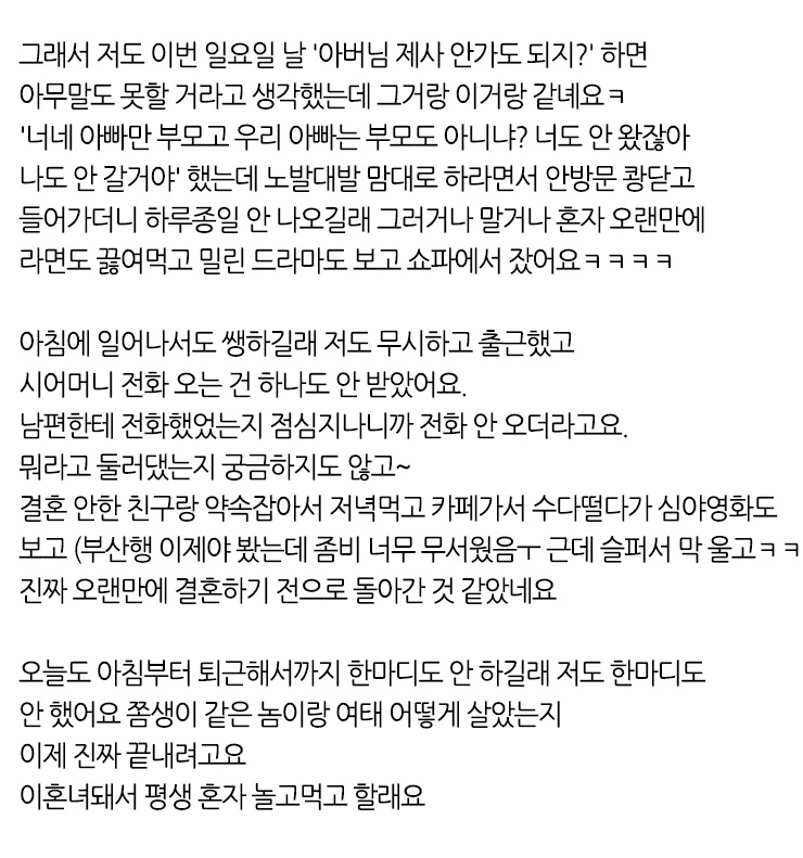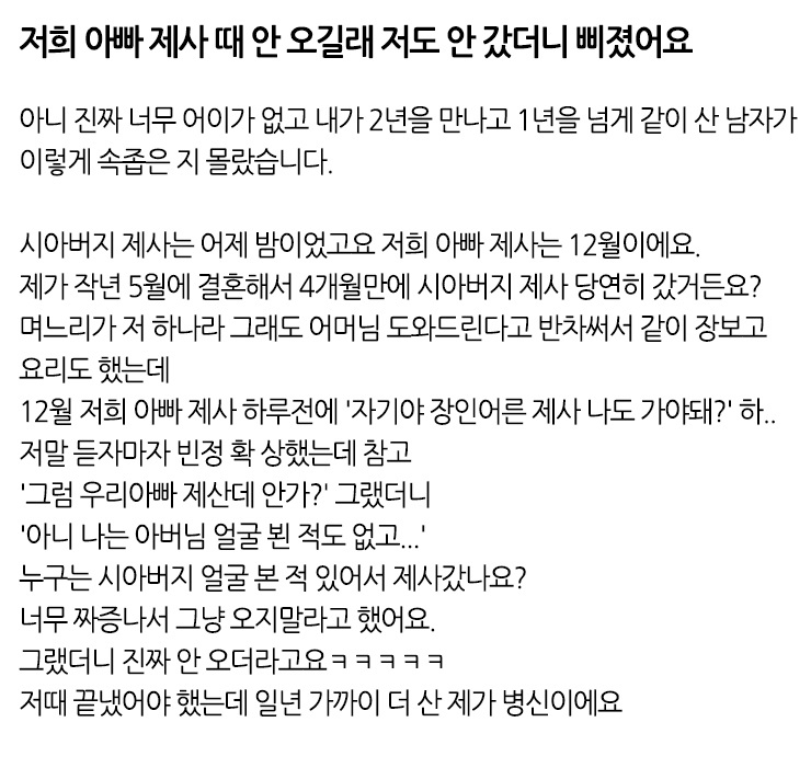 “저희 아빠 제사 때 안 오길래 저도 안 갔더니 삐졌어요”