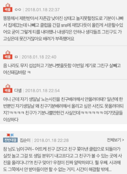 친구는 “난 니 생일이라고 예쁘게 꾸미고 거기까지 가서 그런 수모를 당하고 왔는데 내 생각을 너무 안 한 것 같다”며 울분을 토했다.