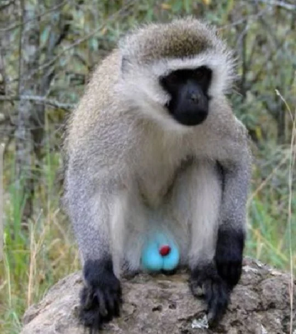 A씨가 생각한 동물은 바로 ‘버빗 원숭이’이다. 긴꼬리원숭잇과에 속하는 버빗원숭이는 얼굴과 손발이 검은색이며 눈썹 부위에 가로로 흰 막대 무늬가 있다. 이 원숭이의 부.랄은 민트색이다.