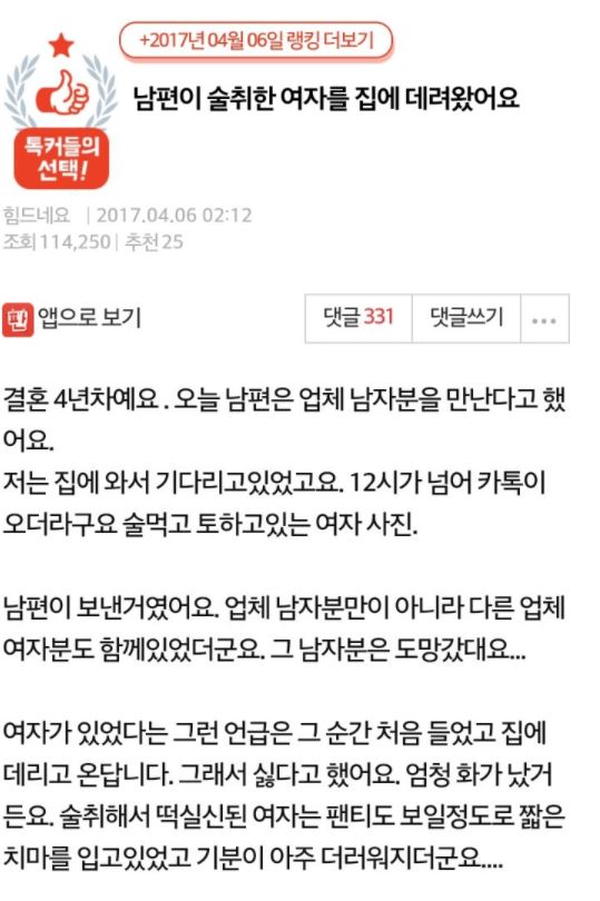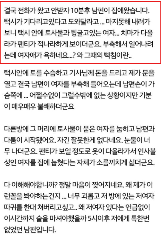 “남편이 술 취한 여자를 집으로 데려왔어요” ADVERTISEMENT point 50 | 온라인 커뮤니티 point 107 | ADVERTISEMENT point 0 | 온라인 커뮤니티 point 57 | 온라인 커뮤니티 point 114 | ADVERTISEMENT point 0 | 온라인 커뮤니티 point 57 | 1