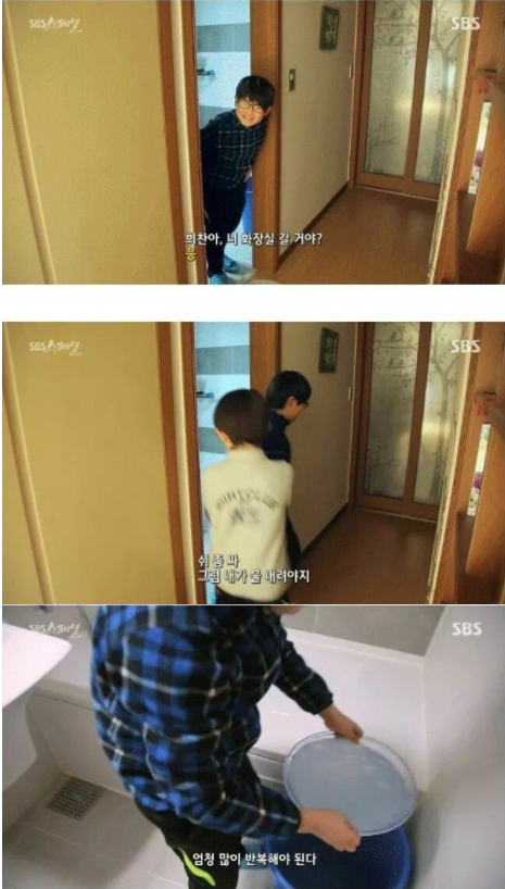 생리현상으로 화장실을 사용할 때도 세탁물을 사용하는 아이들.