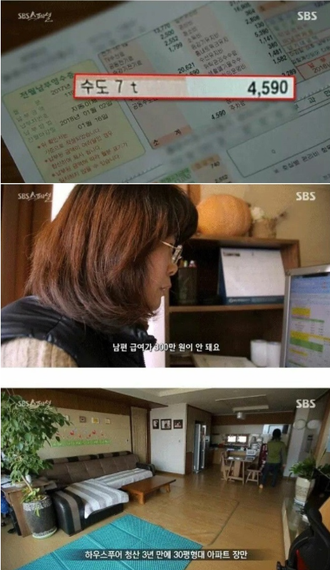 남편 급여가 3백만원이 안 되는데 변기물까지 절약해 가면서 아파트를 마련했다고 한다.
