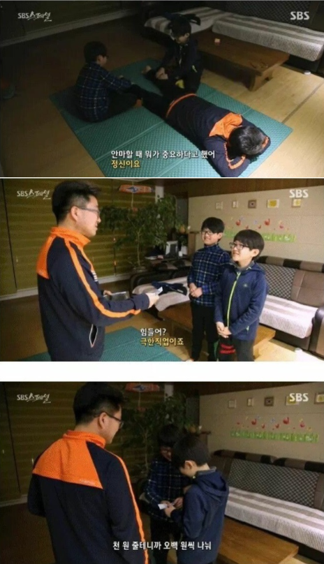 차로 움직일때 차 기름값도 아이들이 대준다고 한다.