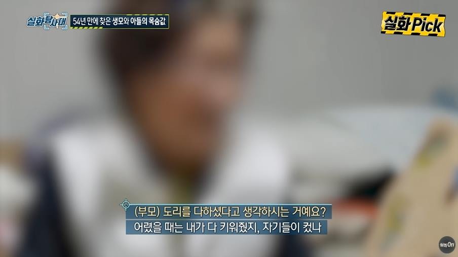 “(부모로서의) 도리를 다하셨냐고 생각하느냐”는 제작진의 물음에는 “어렸을 때는 내가 다 키워줬지, 혼자 컸나”라며 되려 당당한 모습을 보였다.