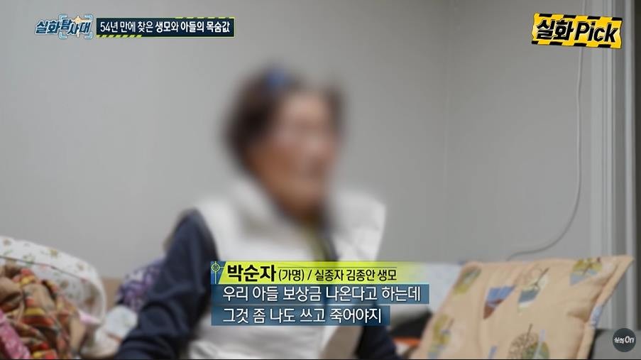 모친 B 씨는 “우리 아들 보상금 나온다고 하는데 그것 좀 쓰고 나도 죽어야지”라며 “버리고 갔다고 하는데, 버리고 간 건 아니라”라고 말했다.