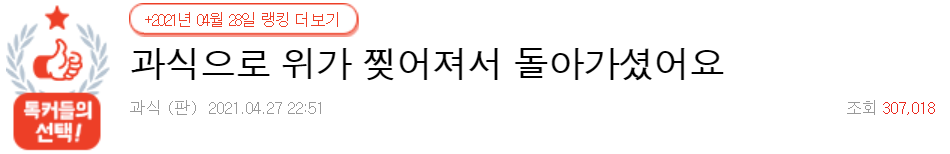 지난 27일 한 온라인 커뮤니티에는 “과식으로 위가 찢어져서 돌아가셨어요”라는 제목의 글이 올라왔다.