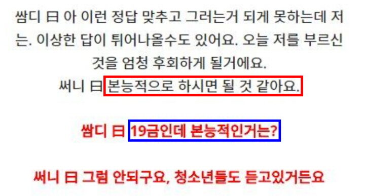 써니가 본능적으로 하시면 될 것 같다고 말하자 쌈디는 갑자기 “19금인데 본능적인 거는?”이라고 대답했다.