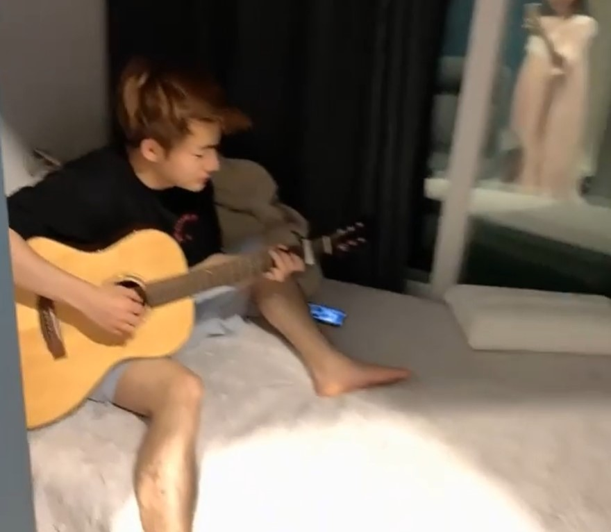 함소원은 핸드폰을 들고 안방에서 기타를 치는 남편을 촬영했다.