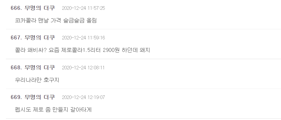 이를 본 네티즌들은 “안그래도 비싸서 펩시로 갈아탐… 나 코카콜라 충성고객이었는데 ㅎㅎ 점점 맛도 예전만 못하더라”, “콜라 왜비싸? 요즘 제로콜라1.5리터 2900원 하던데 왜지” 등의 반응을 보이고 있다.