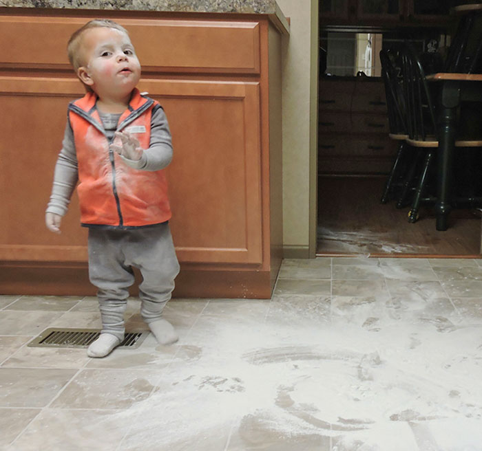 잠깐 눈을 돌린 사이에 집이 밀가루 범벅으로 변해버린다면?
