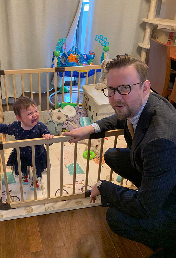 #4 9개월간의 정신없는 시간이 흐르고, 출근하려고 양복을 입었습니다. 아이가 울더라고요?