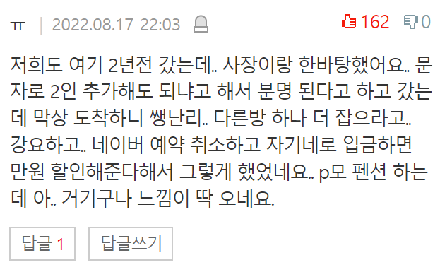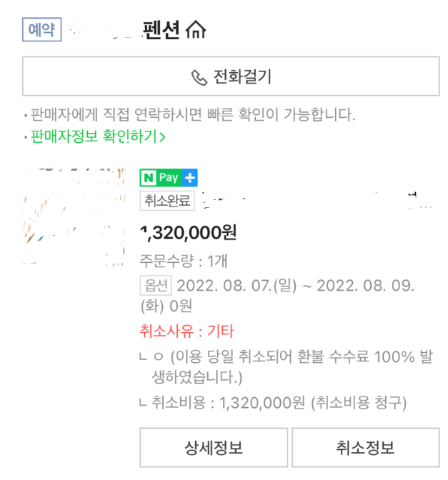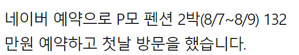 A씨는 “네이버 예약으로 P모 펜션 2박(8/7~8/9) 132만원” 라 말문을 열었다.