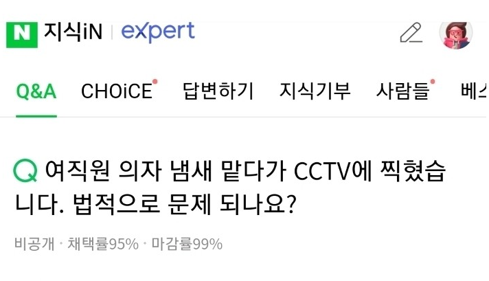한 남성이 자신이 다니던 직장 동료 여직원의 의자 냄새 맡다가 CCTV에 적발됐는데 이것이 법적으로 문제가 되냐고 묻는 글이었다.