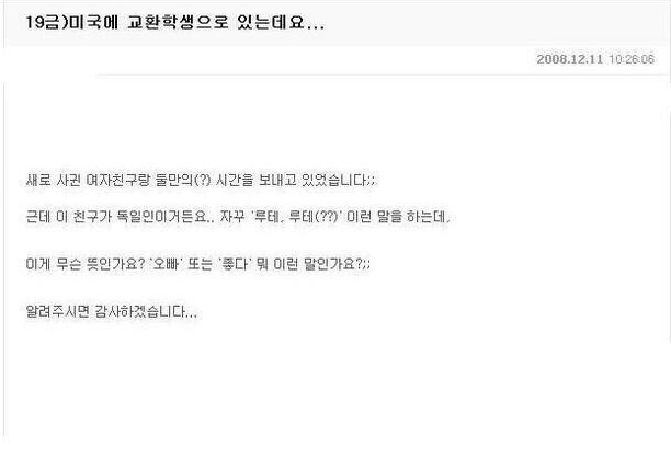 이에 A씨는 독일인 여자친구가 계속해서 하는 ‘루테’라는 뜻을 알고 싶어서 누리꾼들에게 물었다.