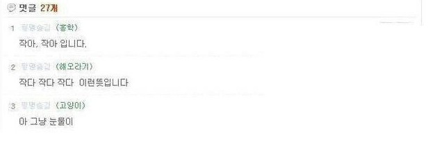 대다수가 “‘작다’ ‘작아’ 이런 뜻입니다..” “아 눈물나네” “작다고 하는거임 ㅋㅋ” 등의 반응을 보였다.