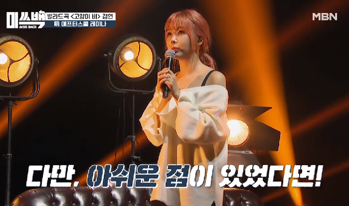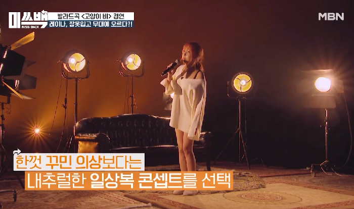 지난 22일 방송된 MBN ‘미쓰백’에서는 레이나의 ‘고양이 비’ 무대가 공개됐다.