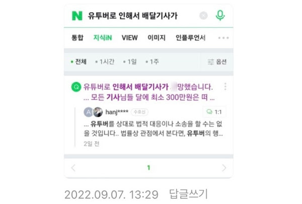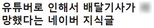 안녕하세요. 얼마 전 유튜버로 인해 배달 기사가 사망했다는 글을 올렸던 사람입니다.