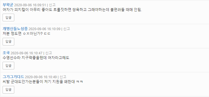 웬만한 남성들도 찍어누를만한 근력과 지구력을 가지고 있을 여성 선수를 비난하는 것은 너무 일반화라며 불편한 기색을 드러내고 있다.