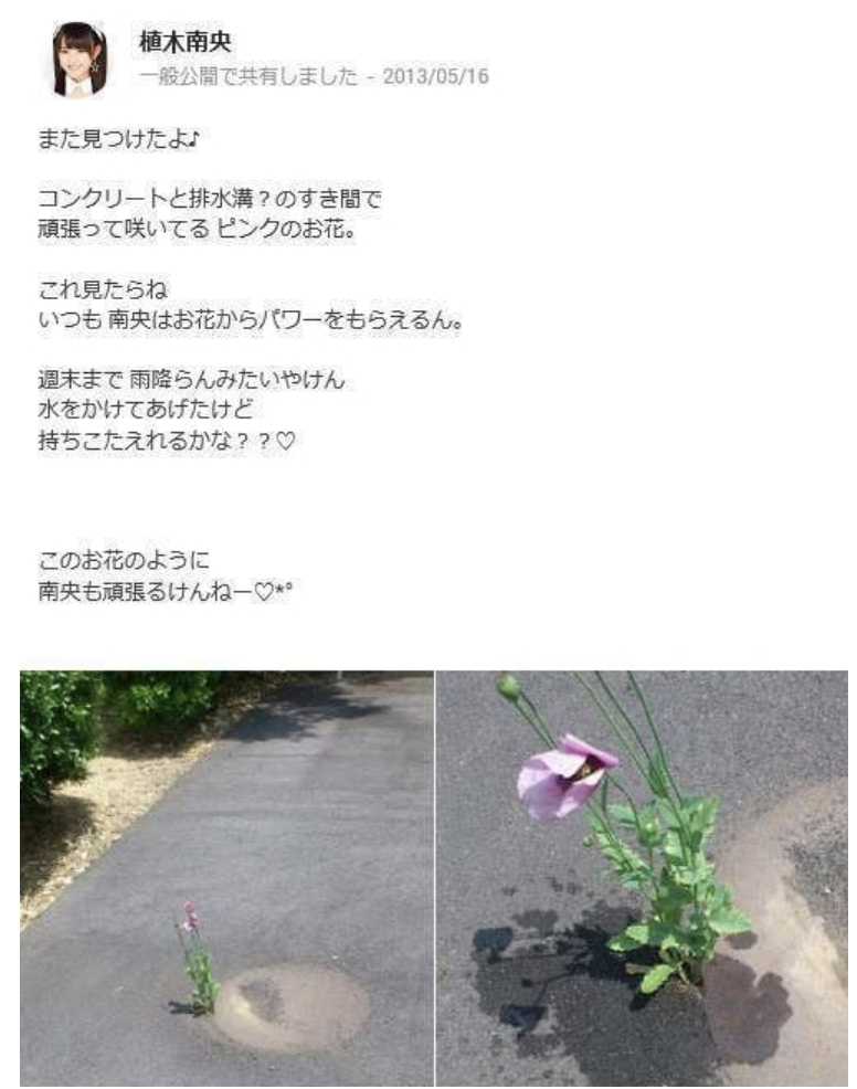 홀로 피어있는 꽃 한송이를 본 우에키 나오는 꽃에 물을 준 다음 사진을 찍어 자신의 SNS에 올렸다.