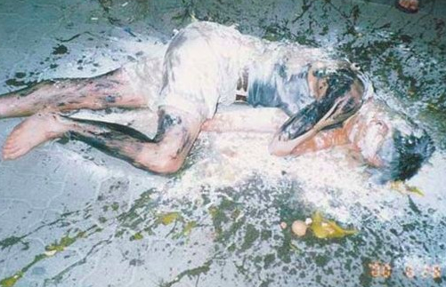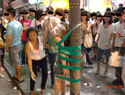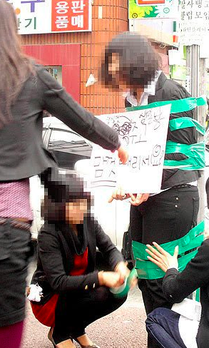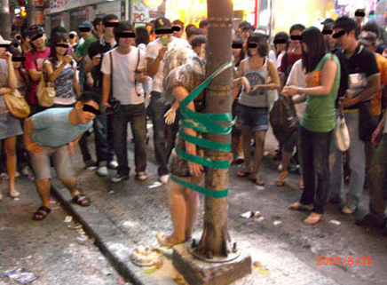 해당 사진에서는 전봇대나 나무에 생일인 사람을 청테이프로 묶어두고 밀가루와 달걀에 맞은 모습이 담겼다.