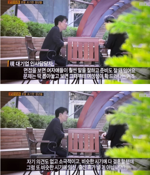 의견도 없고 소극적이며 더 큰 문제는 결혼을 하는데, 비슷한 시기에 결혼을 하고 또 비슷한 시기에 임신 등으로 휴가를 낸 다는 것.
