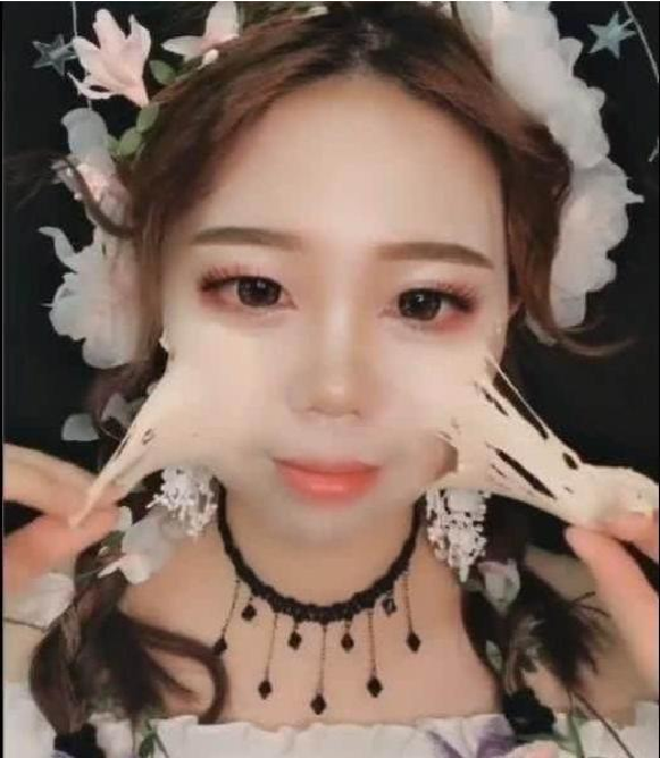 그의 모습에 용기 낸 A씨는 클렌징을 꺼내 피부화장을 지웠다. 그러자 피부에서 얇은 막같은 물질이 나왔다. 이어 콘택트렌즈를 빼고 눈화장을 지우자 눈 크기가 반으로 줄어 들었다. 완전 다른 사람으로 변한 셈.