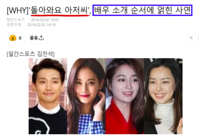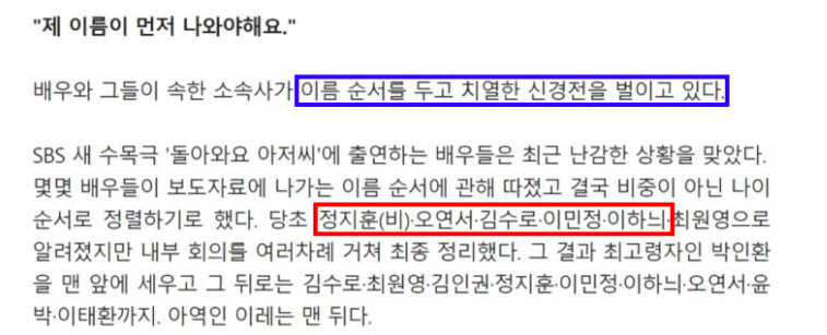 드라마와 관련된 보도 자료에 “정지훈, 오연서, 김수로, 이민정, 이하늬” 순으로 결정이 나서 논란이 보여진 것이다.