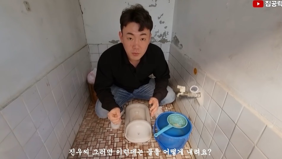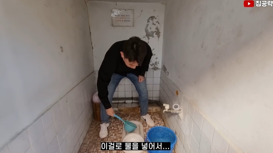 문밖으로 나가 한 공간을 열자 나타난 변기의 경우, 좌변기가 설치되어 있었고 바가지에 물을 퍼서 변기에 부어 물을 내리는 형식으로 사용해야 했다.