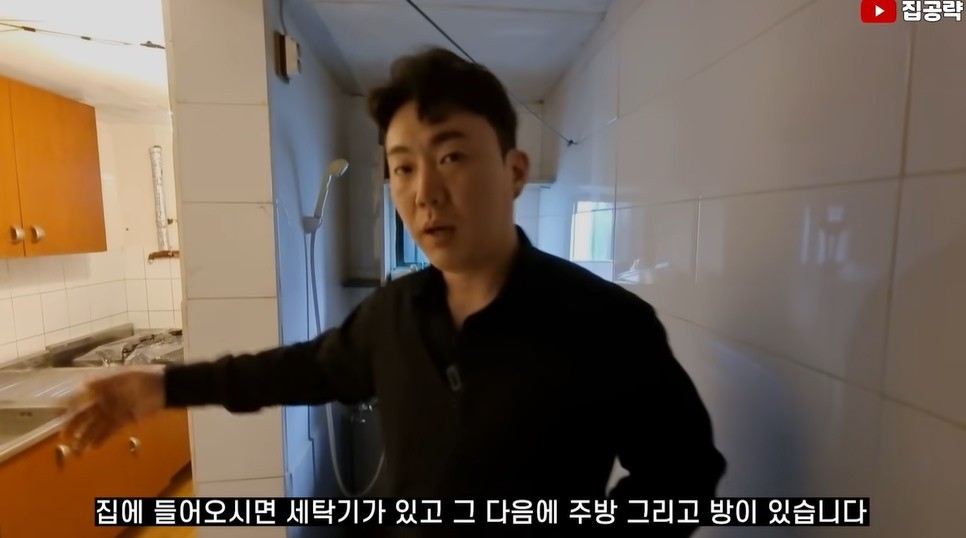 세탁실은 방과 별도로 분리돼 있지 않았고, 위치는 현관문을 열면 바로 보이는 공간이었다.