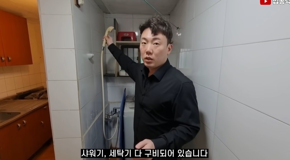 가장 충격적인 부분인 세탁실과 화장실에는 샤워실이 별도도 없어 세탁실에 설치된 샤워기로 샤워를 해야 하는 환경이었다.