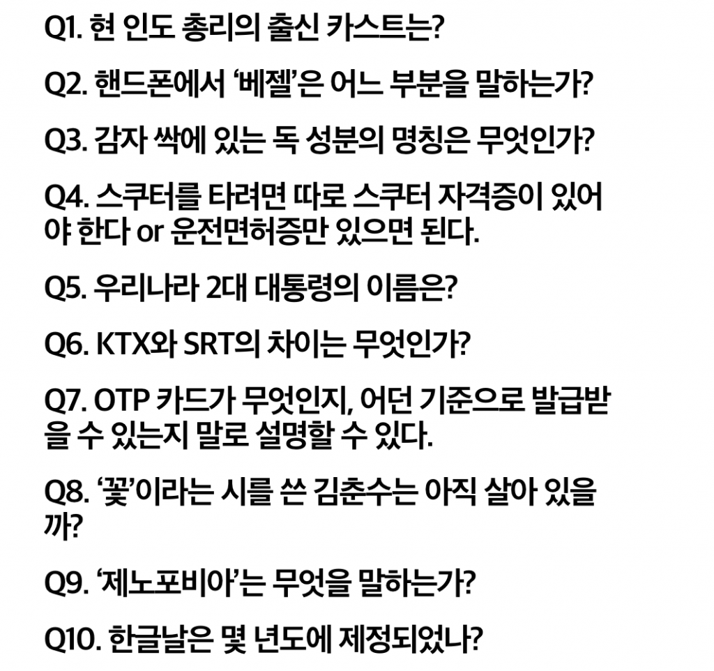 전 애인이 냈던 문제는 총 10개로 글쓴이는 자신이 진짜로 상식이 없는 건지 다른 사람들도 맞출 수 있는지에 대해 궁금해서 글을 올렸다고 밝혔다.