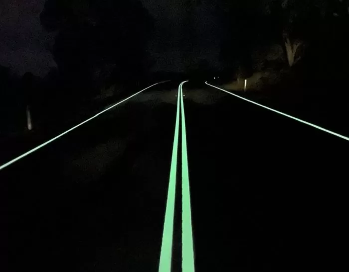 호주의 타막 라인메이킹(Tarmac Linemarking)에서 개발한 이 야광 차선은 광발광성 물질이 함유된 페인트로 칠해졌는데, 광발광은 물체가 빛을 받아 흡수하여 들뜬 상태로 올라갔다가, 다시 바닥상태로 내려오면서 내는 빛을 말한다.