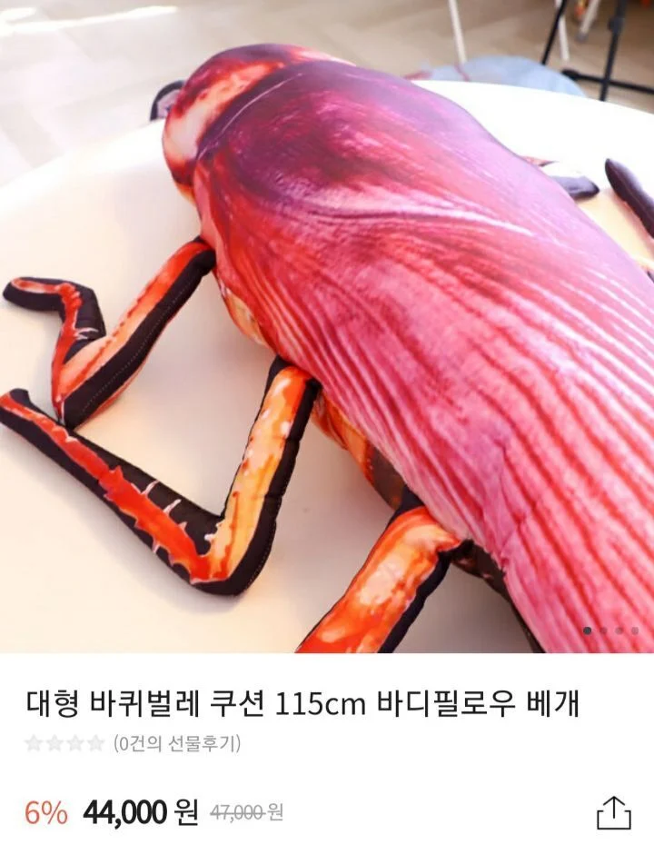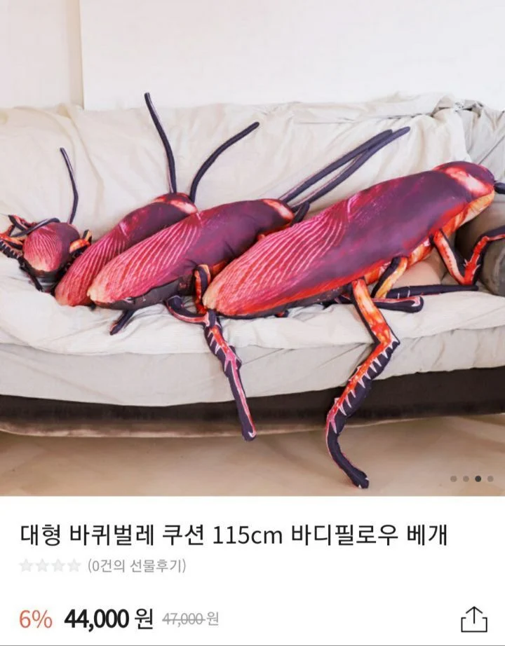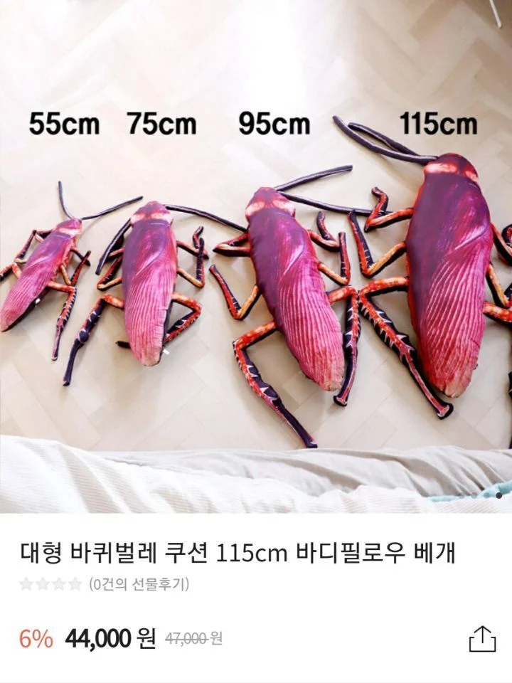 이는 55cm~115cm를 자랑하는 대형 바퀴벌레 쿠션이다.