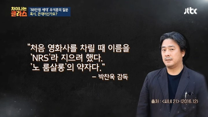 박 감독은 “2000년대 초반까지만 하더라도 그런 문화가 관행처럼 여겨졌다. 하루빨리 룸S롱 접대 문화가 없어졌으면 하는 마음에 처음 영화제작사를 차릴 때 이름을 ‘NRS’로 지으려 했다. ‘노 룸S롱’의 약자다”고 말했다.