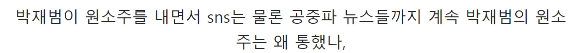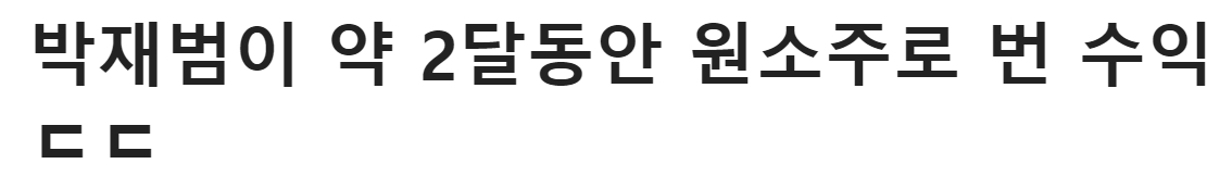 온라인 커뮤니티에는 원소주가 출시 되고 2달 만에 박재범이 번 수익에 대한 글이 올라와 누리꾼들 사이에서 엄청나게 화제가 되고 있다.
