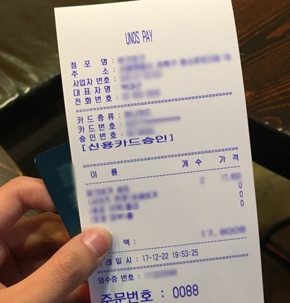 현금으로 구입한 때에는 정말로 큰 돈(최소 10만원 대 이상)이 아닌 이상 영수증이 발급되지 않지만, 카드로 구입한 때에는 돈을 아무리 적게 썼든 크게 썼든 꼭 나온다.