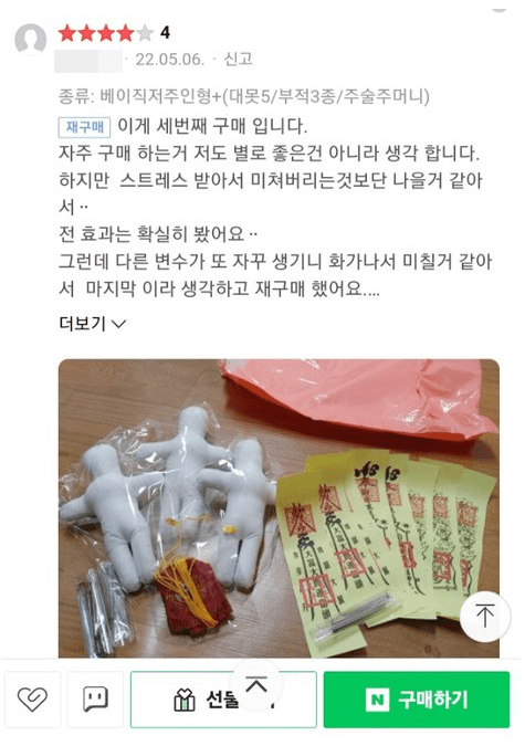 저주 인형을 구매한 수 많은 20대 여성들의 리뷰도 볼 수 있었다.