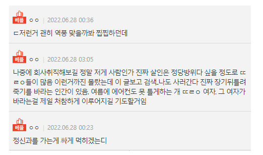 네티즌들은 “저런 거 괜히 역풍 맞을까 봐 찝찝하던데”, “정신과를 가는 게 낫겠다”, “소름 돋는다” 등의 다양한 댓글을 보였다.